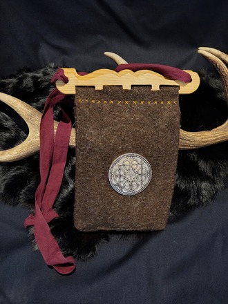 Diese handgefertigte Wikingertasche orientiert sich an historischen Vorbildern aus der Wikingerzeit und verbindet schlichte Funktionalität mit symbolträchtiger Verzierung. Sie eignet sich ideal für Reenactment, LARP oder als authentisches Accessoire für historische Märkte.